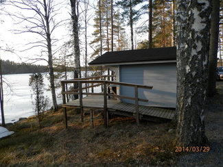 ![]() Päärakennuksessa, joka on kaikkien alueella olevien jäsenten käytössä, on tupa, sauna ja iso veranta. Tuvassa on avotakka, puuhella, sähköliesi, jääkaappi, mikroaaltouuni, kahvinkeitin, radio ja tv. Astioita löytyy jonkin verran (lautasia, ruokailuvälineitä, kattiloita, paistinpannuja ym). Pihassa on grillikatos. Ulkokäymälä. Useampi vene löytyy rannasta sekä pelastusliivejä päärakennuksessa. Alue on sähköistetty. Oma kaivo löytyy kolmosmökin vierestä, tuo kuitenkin juomavasi tullessasi. |