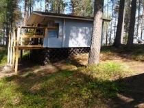 ![]() Päärakennuksessa, joka on kaikkien alueella olevien jäsenten käytössä, on tupa, sauna ja iso veranta. Tuvassa on avotakka, puuhella, sähköliesi, jääkaappi, mikroaaltouuni, kahvinkeitin, radio ja tv. Astioita löytyy jonkin verran (lautasia, ruokailuvälineitä, kattiloita, paistinpannuja ym). Pihassa on grillikatos. Ulkokäymälä. Useampi vene löytyy rannasta sekä pelastusliivejä päärakennuksessa. Alue on sähköistetty. Oma kaivo löytyy kolmosmökin vierestä, tuo kuitenkin juomavasi tullessasi. |